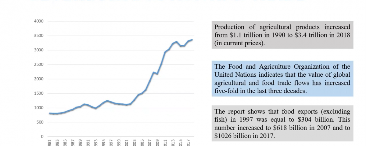 Доктор Азимжан Хитахунов семинарында ауыл шаруашылығының жаһандық үрдістеріне назар аудара отырып, ауыл шаруашылығы саласындағы әлемдік өндіріс пен саудаға тоқталды. Баяндамашы әлемдік құндылықтар тізбегінің осы саладағы маңыздылығын түсіндіре отырып, дамушы елдердің ауылшаруашылық өндірісінде де, әлемдік саудада да рөлі артқанын мәлімдеді. Бұл әсіресе Қытай мен Үндістанға қатысты, дегенмен, дамыған елдердің әлемдік агробизнестегі көшбасшылығы сөзсіз. Хитахунов АҚШ-тың ауыл шаруашылығы саласында жетекші өндірушілер мен экспорттаушылардың бірі екенін еске сала отырып, Польша және Беларусь сияқты елдерде де ауыл шаруашылығы секторын дамытуда айтарлықтай жетістіктерге қол жеткізілгенін атап өтті.