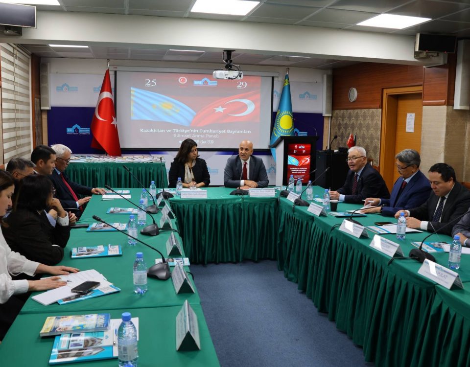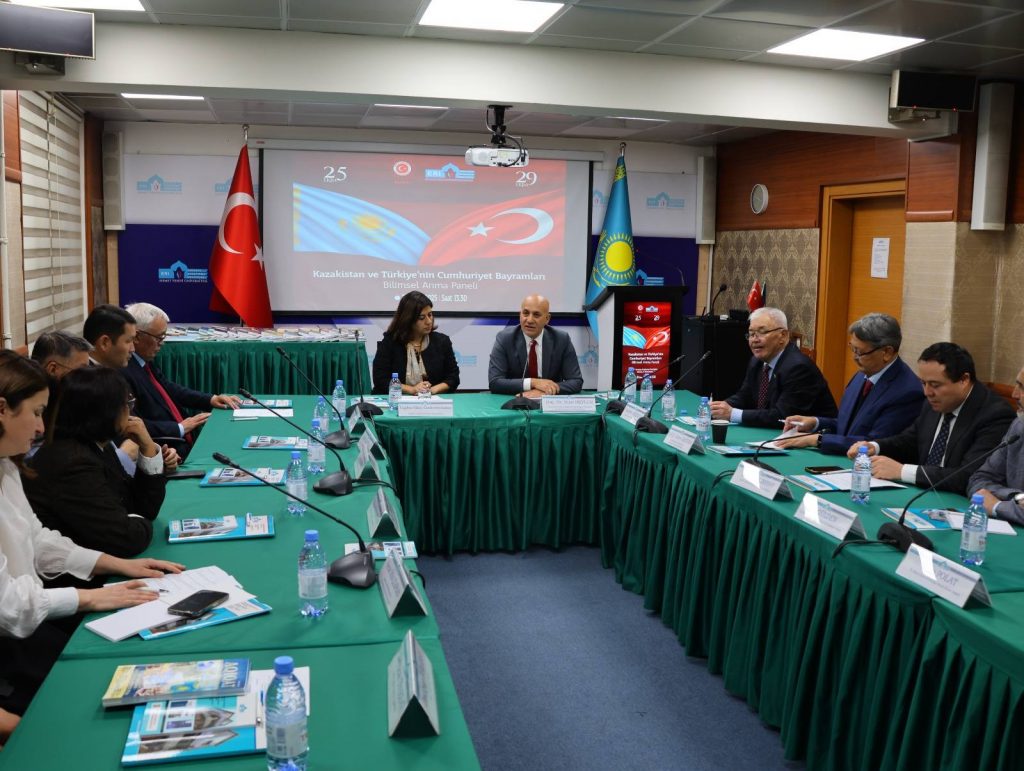 October 29, 2025T.C. Almatı Başkonsolosluğu iş birliğinde düzenlenen “Kazakistan ve Türkiye’nin Cumhuriyet Bayramları: Bilimsel Anma Paneli”, kurum ve kuruluş temsilcileri, bilim insanları, öğrenciler, medya mensupları ile Türkiye ve Kazakistan vatandaşlarının geniş katılımıyla gerçekleştirildi.