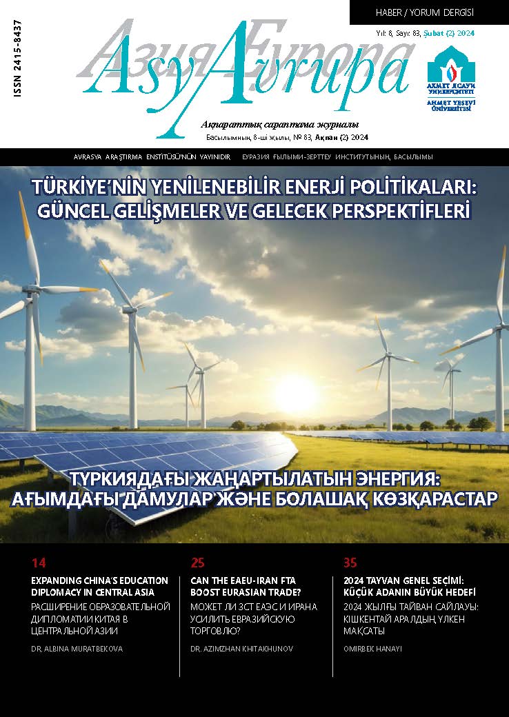 Değerli okurlarımız, Avrasya Asya Avrupa Dergisi’nin 83. Sayısı ile bölgesel gelişmelerin mercek altına alındığı analizlerle yeniden sizlerle birlikte olmanın mutluluğunu yaşıyoruz. Rusya-Ukrayna savaşının bölge ekonomisine olan olumsuz etkileri devam ederken ülkeler hem ikili hem de çok taraflı girişimlerle yaşanan darboğazdan çıkış yollarını çeşitlendirmeye çalışmaktalar. Bu kapsamda Avrasya Ekonomik Birliği (AEB), […]